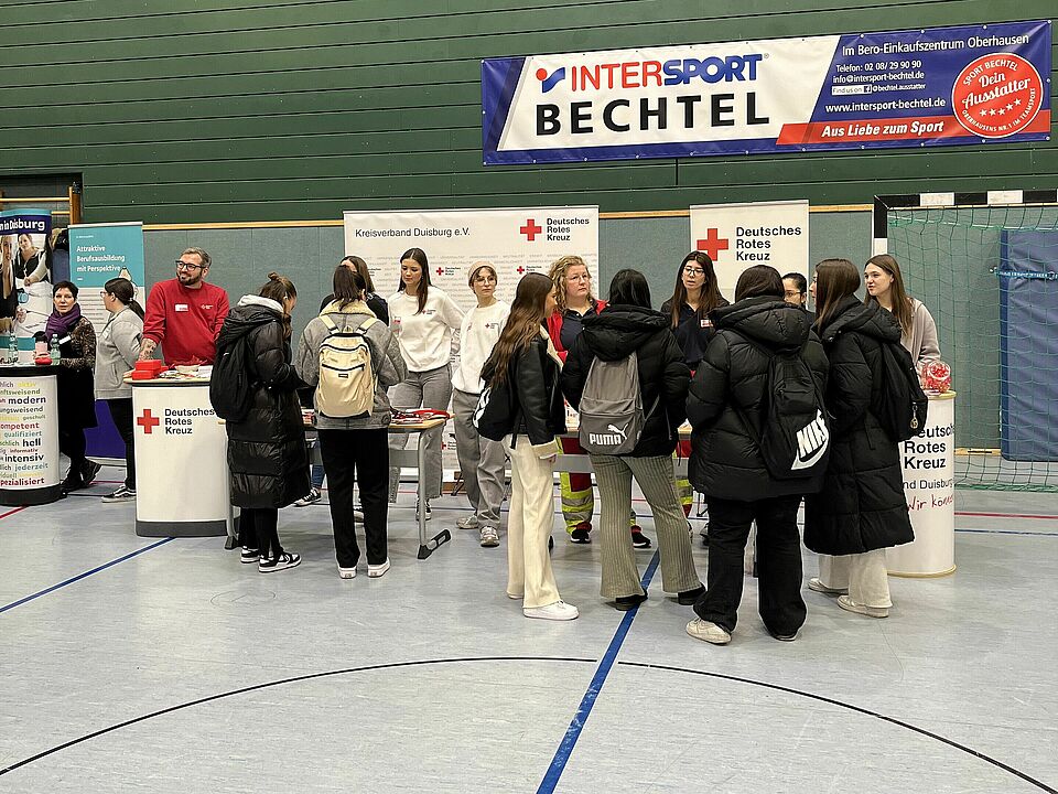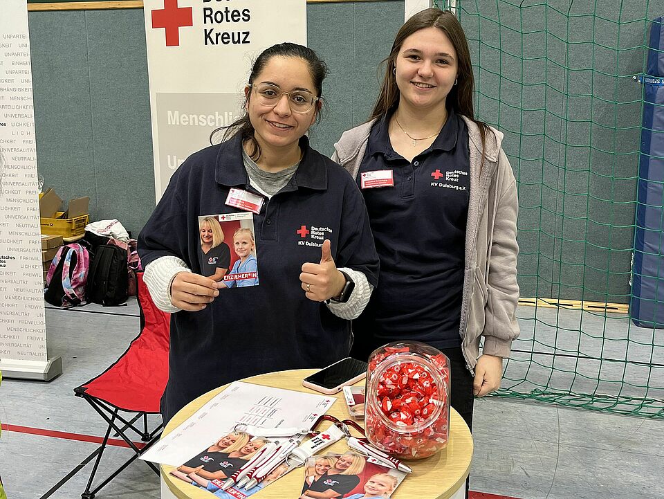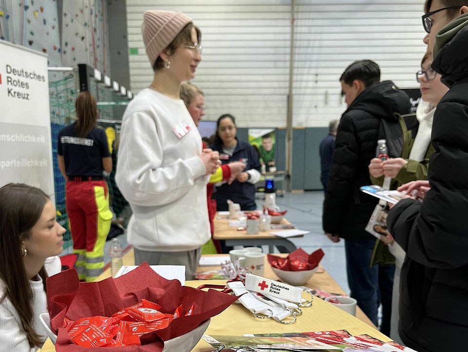 Unser Messestand wurde bereichert durch die Präsenz von zwei angehenden Notfallsanitäterinnen und zwei angehenden Erzieherinnen. Ebenfalls vertreten waren unsere Auszubildenden in den Bereichen Veranstaltungskauffrau, Bürokauffrau und zwei Pflegemitarbeiter*innen.
