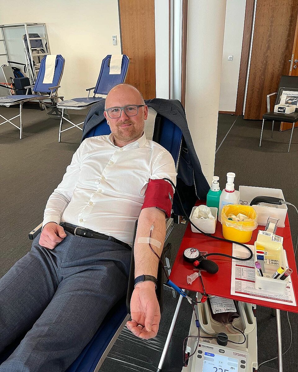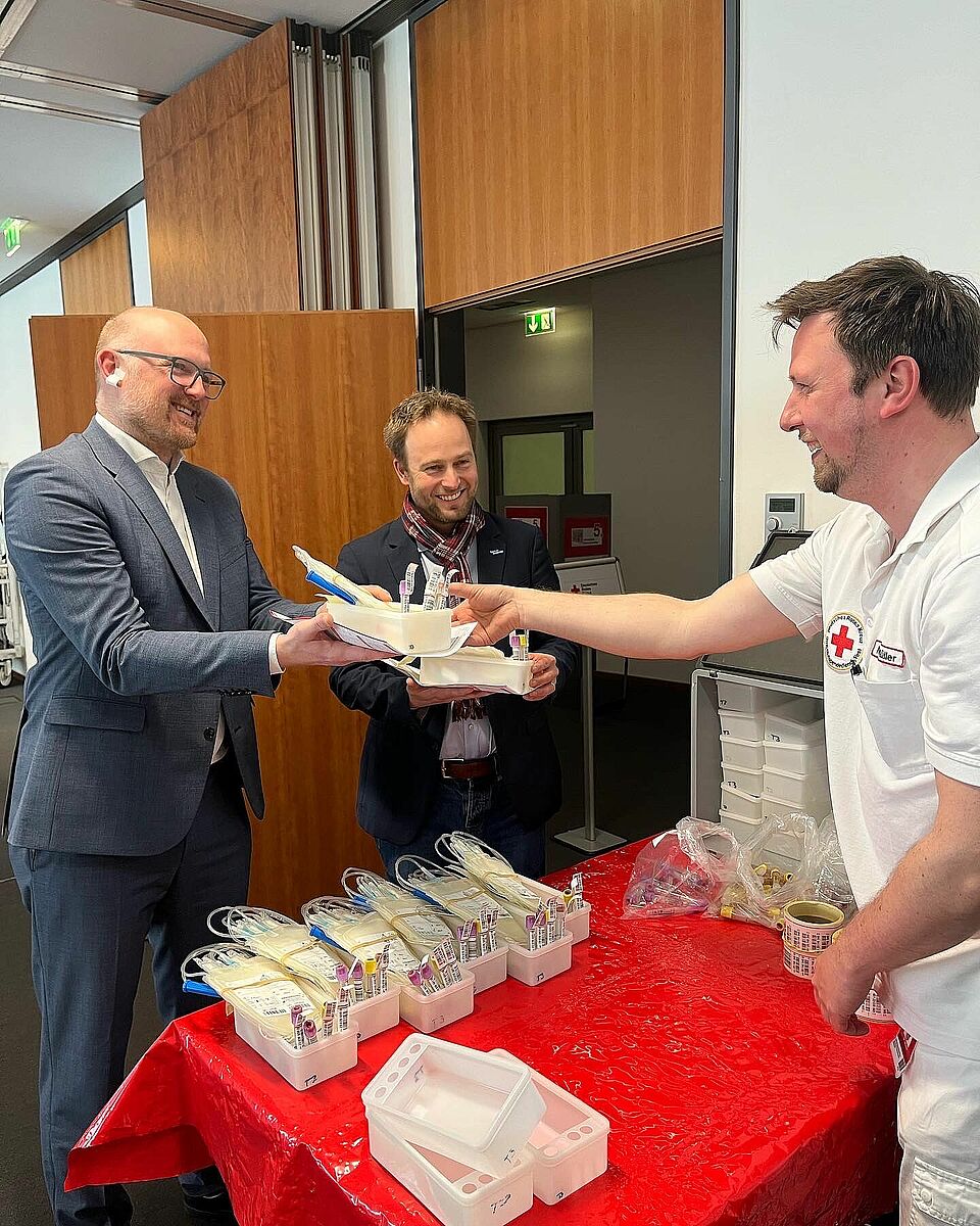 Von 10:00 bis 15:00 Uhr gingen zahlreiche freiwilige Blutspender*innen ein und aus, unter ihnen auch Sören Link, Oberbürgermeister von Duisburg und der Beigeordnete Martin Murrack. Beide konnten mit ihrer Blutspende heute Leben retten.