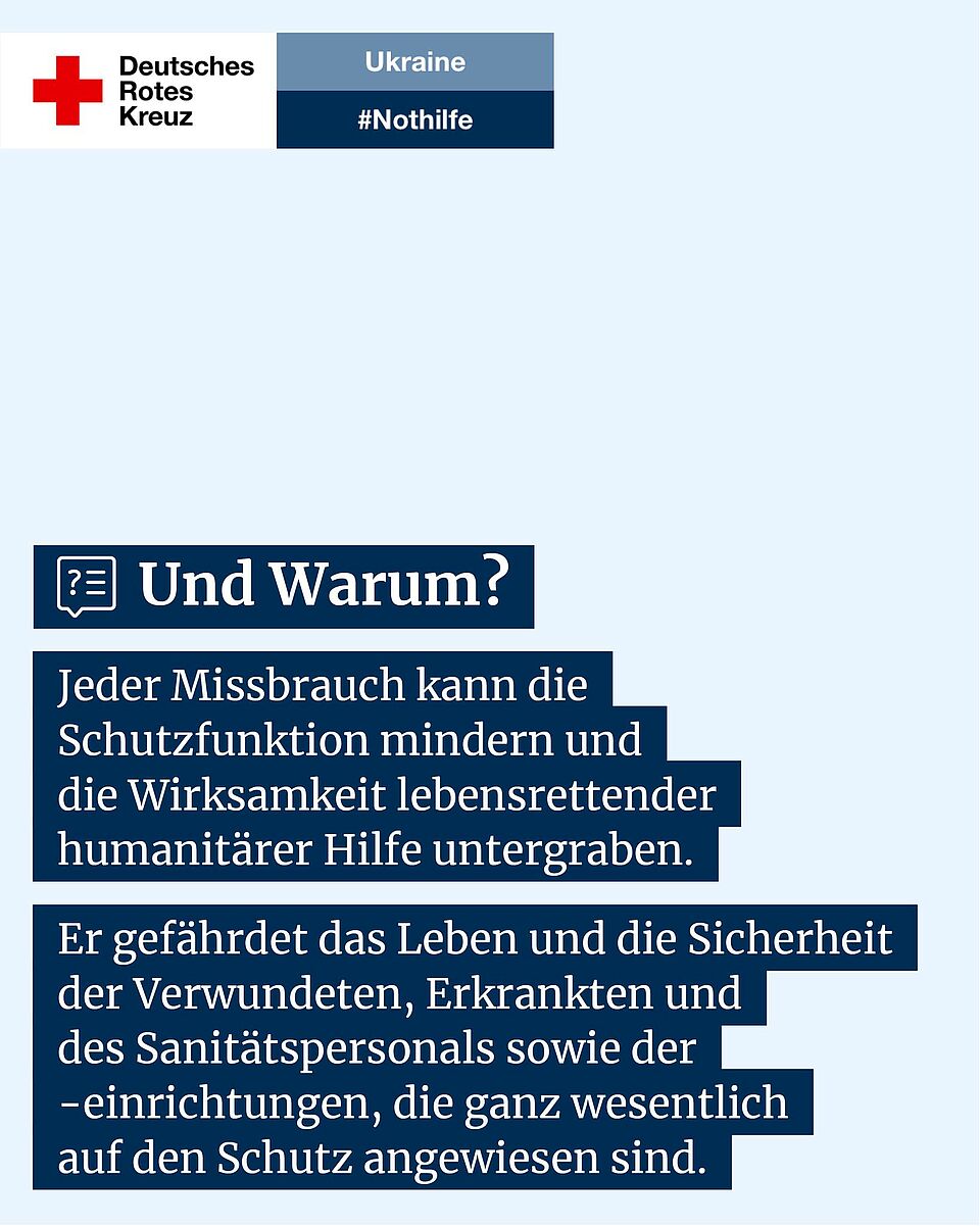 Was auch immer die Konfliktparteien zur Evakuierung von Menschen aus umkämpften Gebieten vereinbarten, sagt Sven Pöhlsen weiter, das humanitäre Völkerrecht müsse grundsätzlich fortgelten: Die Kriegsparteien müssten weiterhin die Zivilbevölkerung sowie Kriegsgefangene und die zivile Infrastruktur schützen, um Trinkwasser, Energie- und Nahrungsmittelversorgung zu gewährleisten. Humanitärer Zugang für neutrale und unparteiisch handelnde Hilfsorganisationen wie das Ukrainische Rotes Kreuz und das Internationale Komitee vom Roten Kreuz müsse ermöglicht werden. Das bedeute, dass diejenigen, die bleiben wollen oder schwer evakuiert werden können – wie etwa ältere Menschen oder Menschen mit Behinderungen – von Angriffen unbedingt verschont bleiben müssen. Außerdem müssten auch alle Zivilisten außerhalb sogenannter humanitärer Korridore weiterhin geschützt werden.