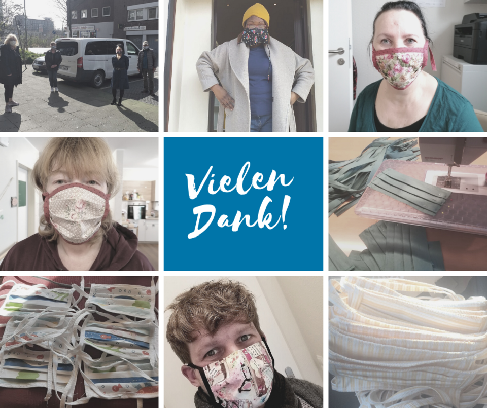Auf unseren Aufruf Atemmasken zu nähen gab es eine großartige Resonanz. Etliche Näher*innen haben sich ans Werk gemacht und unsere Teams mit Atemmasken versorgt.