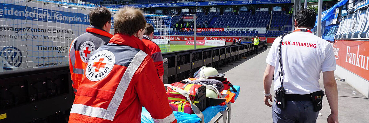 Ob Rockkonzert, Fußballspiel, Karnevalsumzug oder Straßenfest – wo viele Menschen zusammenkommen, gibt es viele kleine und größere Notfälle. Ob ein Kind das Knie aufschürft, ein begeisterter Fan ohnmächtig wird oder einem Läufer beim Marathon die Luft ausgeht – der Sanitätsdienst des Deutschen Roten Kreuzes leistet schnelle Hilfe.